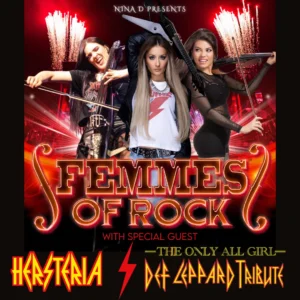 FEMMES OF ROCK, HERSTERIA Rodney Pawlak FEMMES OF ROCK, HERSTERIA When Fri, February 20 8:00 pm Add To Calendar Download ICS Google Calendar iCalendar Office 365 Outlook Live Where Arcada Theatre 105 E Main St, Saint Charles, Illinois, 60174 Event Type All Ages Loading Map.... 105 E Main St - Saint CharlesEvents 41.916953 -88.294768 FEMMES OF ROCK – VIOLIN ROCK!!! with SPECIAL GUEST HERSTERIA – THE ONLY ALL GIRL TRIBUTE TO DEF LEPPARD February 20 @ 8:00 pm