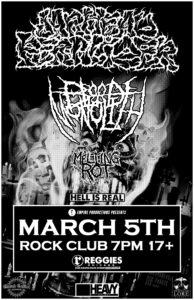 JARHEAD FERTILIZER, BLOOD MONOLITH, MELTING ROT, HELL IS REAL Rodney Pawlak JARHEAD FERTILIZER, BLOOD MONOLITH, MELTING ROT, HELL IS REAL When Thu, March 5 7:00 pm Add To Calendar Download ICS Google Calendar iCalendar Office 365 Outlook Live Where Reggies Rock Club 2109 S State St, Chicago, Illinois, 60616 Event Type 21+ Loading Map.... 2109 S State St - ChicagoEvents 41.853951 -87.62679 reggieslive.com/show/jarhead-fertilizer-2/ JARHEAD FERTILIZER Band Website Spotify Instagram BLOOD MONOLITH Shelby Lermo – Guitar, Vocals Tommy Wall – Guitar Nolan – Bass Nadia Tydings-Lynch – Drums MELTING ROT Local goregrind. D-beat, blast, mince, you know the drill. Spotify Facebook Instagram HELL IS REAL Humanity is the devil. Chicago hardcore. Spotify Instagram