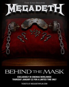 MEGADETH: Behind the Mask Rodney Pawlak MEGADETH: Behind the Mask When Thu, January 22 12:00 am Add To Calendar Download ICS Google Calendar iCalendar Office 365 Outlook Live Event Type All Ages FILM TIMES & LOCATIONS Be the first to watch Megadeth’s upcoming final album on the big screen in Megadeth: Behind the Mask. Exclusively in cinemas worldwide January 22 for a limited time only. Get tickets at www.megadethfilm.com