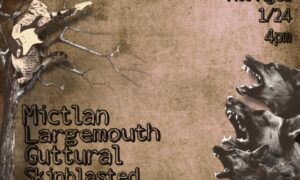 MICTLAN, LARGEMOUTH, GUTTURAL, SKINBLASTED Rodney Pawlak MICTLAN, LARGEMOUTH, GUTTURAL, SKINBLASTED When Sat, January 24 4:00 pm Add To Calendar Download ICS Google Calendar iCalendar Office 365 Outlook Live Where Cobra Lounge 235 N Ashland Ave, Chicago, Illinois, 60607 Event Type 17+ Loading Map.... 235 N Ashland Ave - ChicagoEvents 41.886381 -87.666786