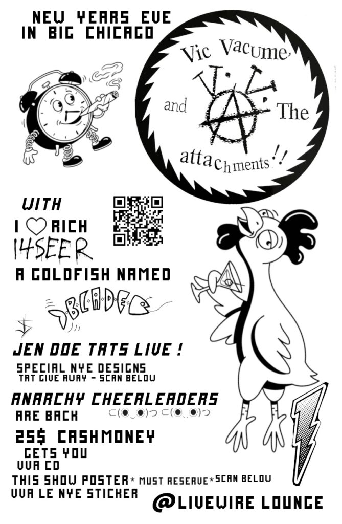 VIC VACUME, I LOVE RICH, 4SEER, A GOLDFISH NAMED BLADE Rodney Pawlak VIC VACUME, I LOVE RICH, 4SEER, A GOLDFISH NAMED BLADE When Wed, December 31 8:00 pm Add To Calendar Download ICS Google Calendar iCalendar Office 365 Outlook Live Where LiveWire Lounge 3394 N Milwaukee Ave, Chicago, Illinois, 60641 Event Type 21+ Loading Map.... 3394 N Milwaukee Ave - ChicagoEvents 41.942821 -87.730414